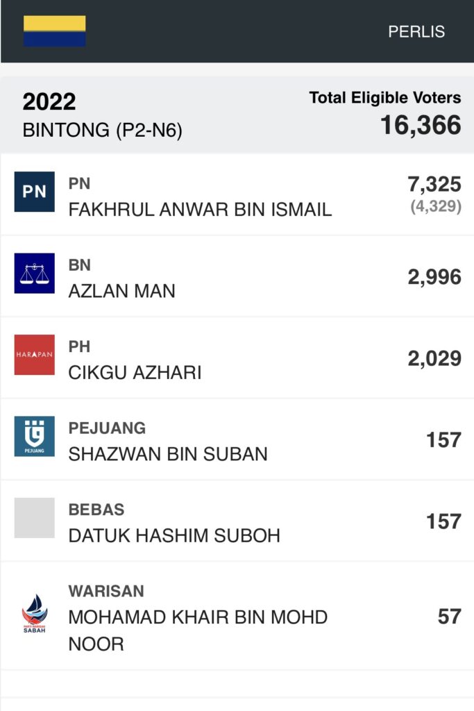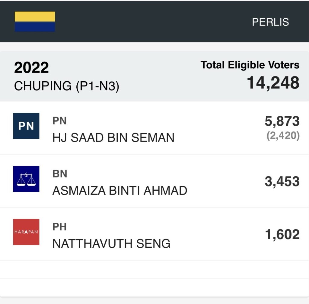 Pada PRU15 lepas, PAS menang dengan cemerlang di ketiga-tiga kerusi berkenaan iaitu di Bintong dengan majoriti 4,329 undi, di Guar Sanji dengan majoriti 5,101 undi dan di Chuping dengan 2,420 undi.