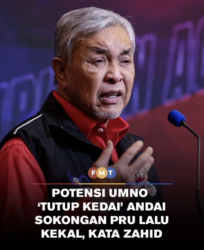 Presiden UMNO, Ahmad Zahid Hamidi mengingatkan bahawa parti itu bakal “tutup kedai” dalam tempoh 20 tahun akan datang, sekiranya corak sokongan rakyat kekal seperti berlaku pada PRU lalu.